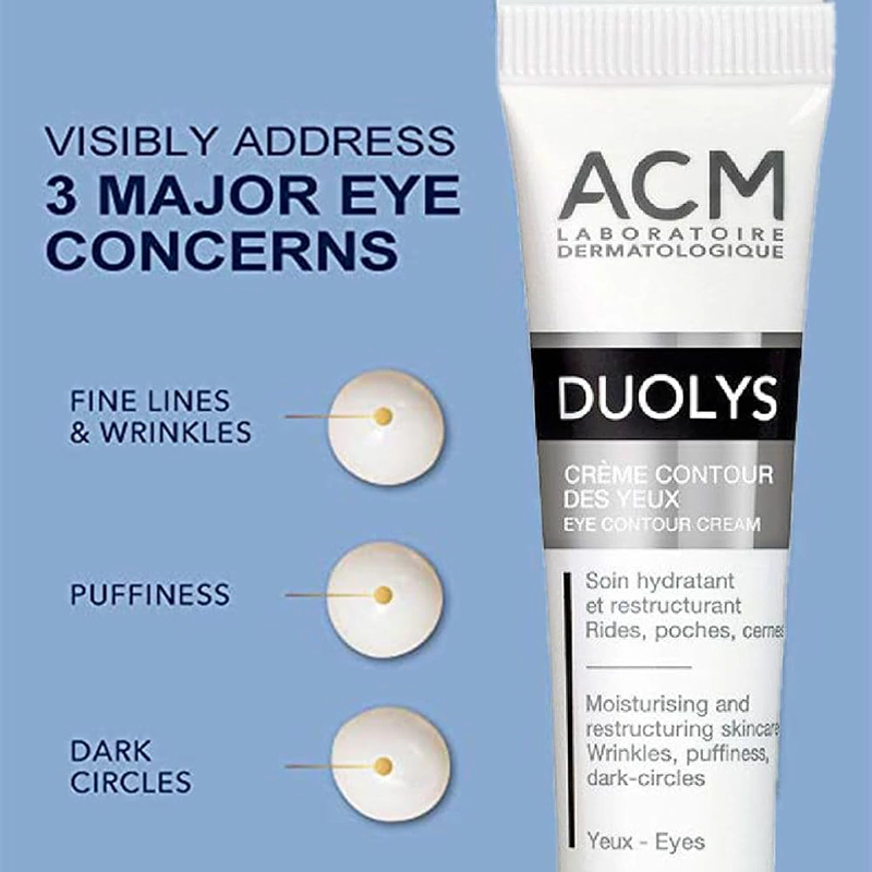 عملکرد ترکیبات کلیدی کرم دور چشم ای سی ام مدل DUOLYS